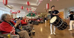 また、『元龍太鼓』の皆さんには、1階デイサービスから4階ショートステイまで、1日に4度も演奏していただきました。