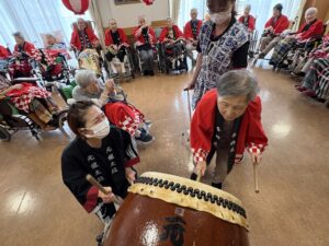 また、『元龍太鼓』の皆さんには、1階デイサービスから4階ショートステイまで、1日に4度も演奏していただきました。