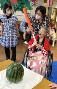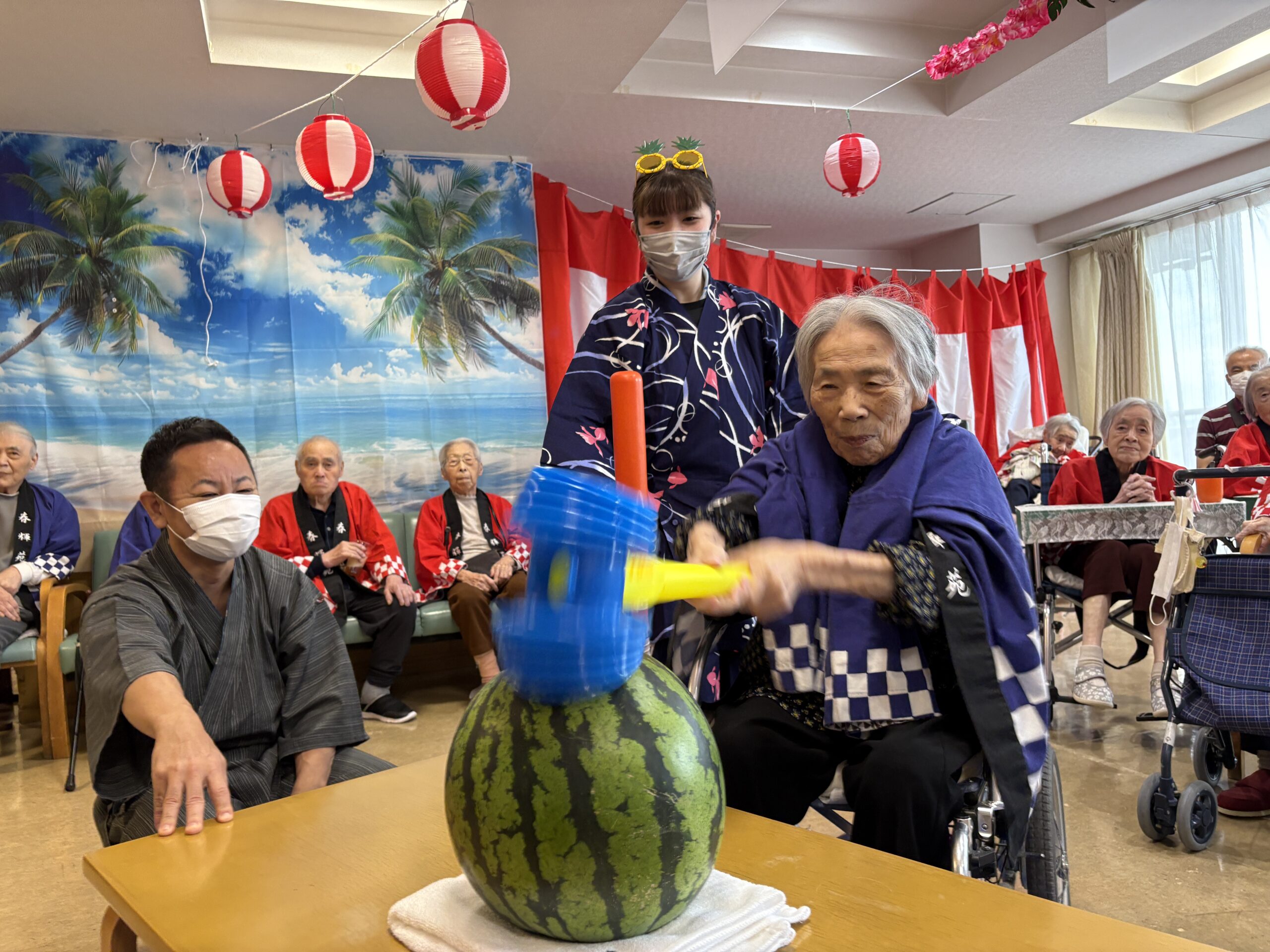 急な変更でしたが、行事委員を中心に各フロアの職員がしっかりと準備に取り組み、利用者の皆様に夏祭りをお楽しみいただくことができました。
